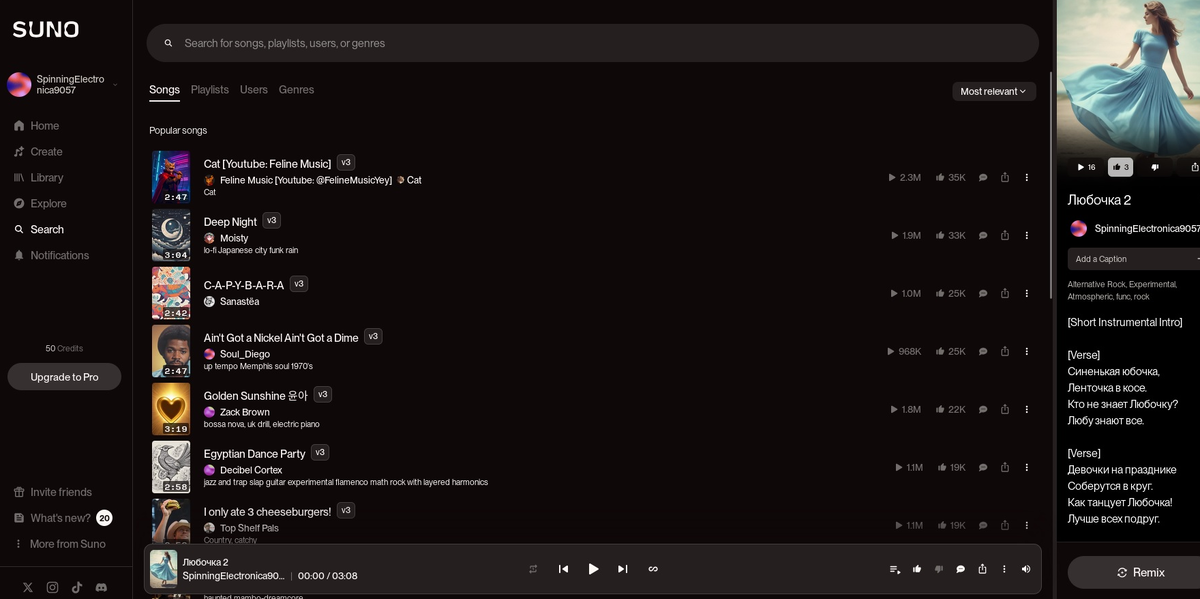 И этот город стал бесконечным... В поле Style of Music (до 120 символов) можно: Примеры описаний: Важно: Suno не распознаёт имена исполнителей, но можно имитировать стиль через жанры. Что дальше?