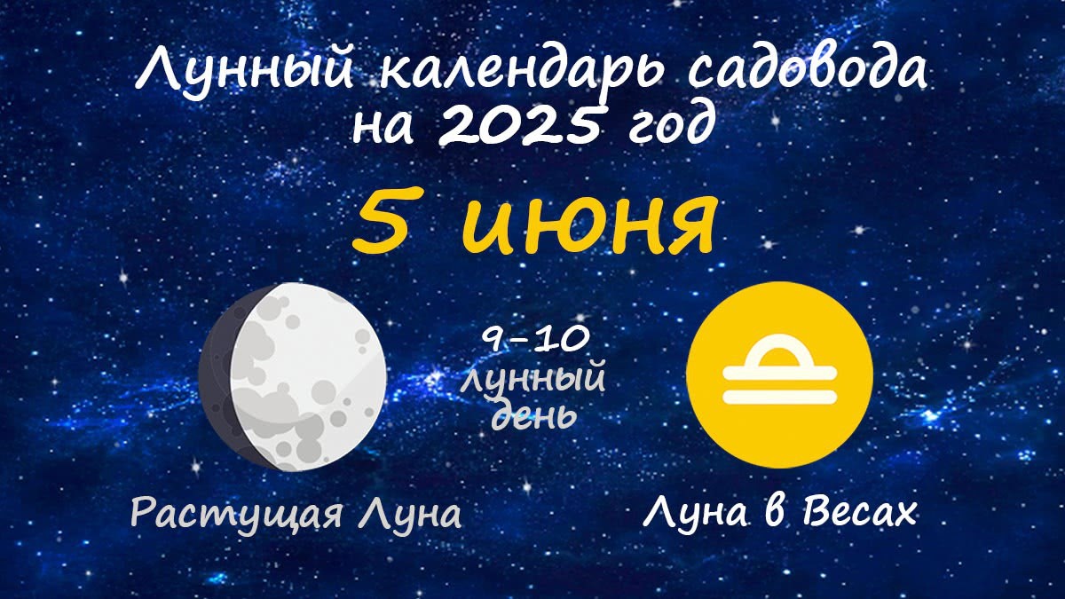 Лунный посевной календарь садовода на 5 июня, четверг, 9-10-й лунный день. 🌔 Растущая Луна находится в Весах ♎️ 🟢 РЕКОМЕНДУЕТСЯ 🟢 Сажать кустарники, в том числе и розы, а также клубневые цветы. Сеять, сажать и пересаживать стеблеплодные, корнеплодные и клубнеплодные декоративные культуры. Сеять и сажать вьющиеся цветы, пряности и лекарственные растения. Вносить в грунт минеральные подкормки. Поливать и рыхлить землю. Прореживать и окучивать всходы. Прищипывать и подрезать побеги растений, удалять прикорневую поросль и ненужные клубничные розетки. Прореживать, омолаживать и формировать кроны крупномеров обрезкой. Убирать урожай корнеплодов. Собирать и сушить цветки лекарственных растений. Срезать цветы для букетов. 🟡 ВОЗМОЖНО 🟡 Сеять, но не сажать: 🔸 арахис, бобы, нут; 🔸 брокколи, кольраби, цветную и пекинскую капусту; 🔸 лук репчатый, порей, шнитт; 🔸 морковь, свеклу, дайкон; 🔸 перец сладкий и горький, баклажаны, томаты; 🔸 огурцы, тыквы, кабачки. Из зелени посейте щавель,