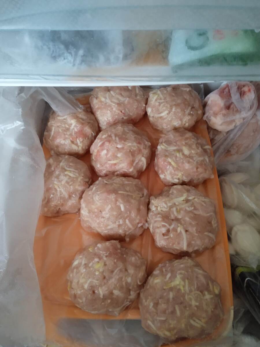 Вареное мясо мне не понравилось, и из остальной свинины я решила сделать полуфабрикаты. Докупила куриную грудку и вместе со свининой прокрутила в мясорубке в фарш. В фарш положила один небольшой натертый кабачок. Все перемешала и сделала котлетки. Получилось 12 больших котлет. Положила их на разделочную доску, накрыла полиэтиленовым пакетом и отправила в морозилку. Полуфабрикаты готовы, и надеюсь, мне их хватит надолго.