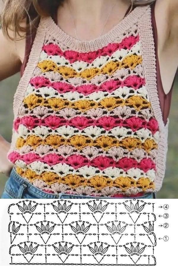 Оригинальный цветной топ (я бы его связала подлиннее - как тунику или даже сарафан):