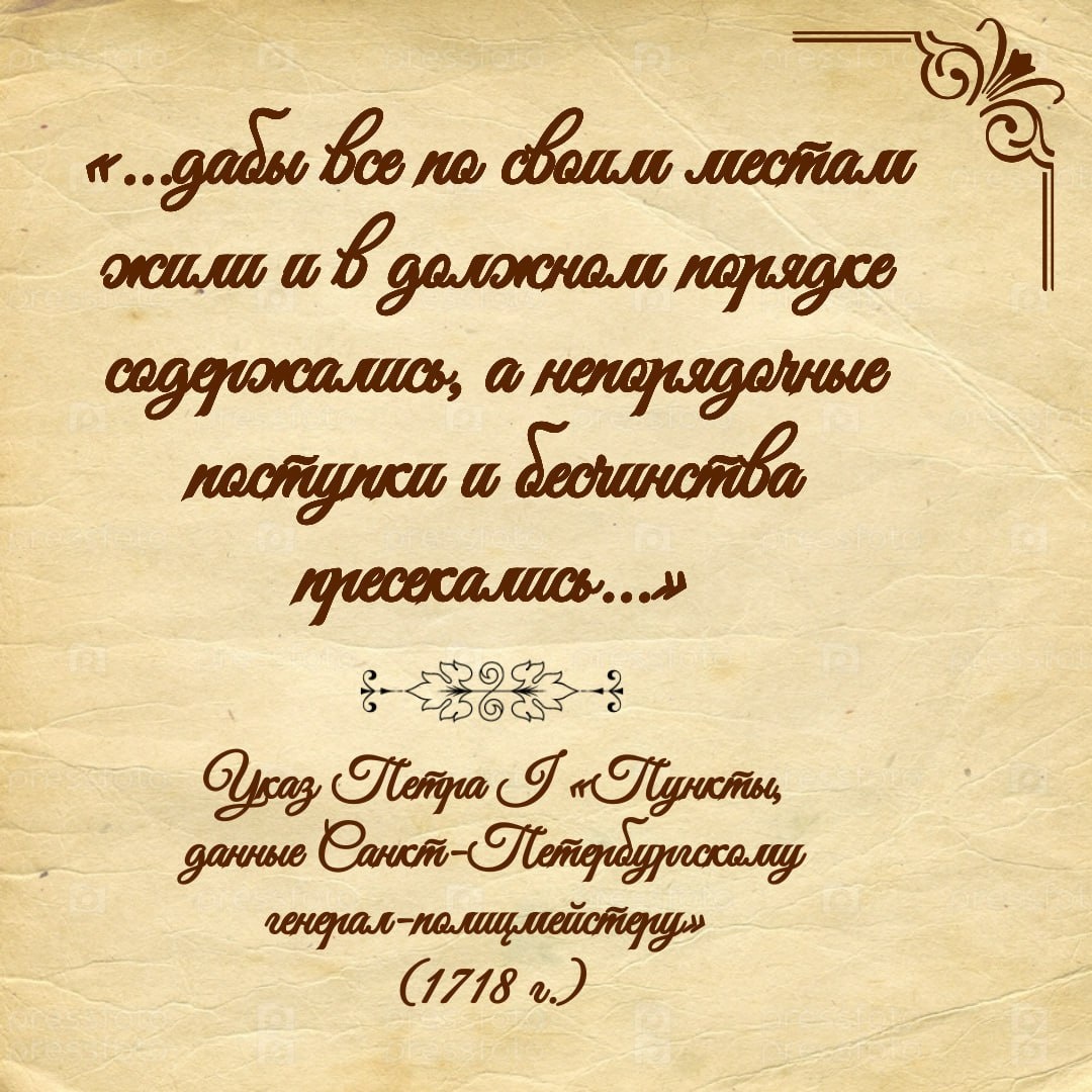 Ρ ΡΠ΅ΡΠΎΡΠΌ ΠΠ΅ΡΡΠ° I. Π£ΠΊΠ°Π· ΠΎΡ 25 ΠΌΠ°Ρ (5 ΠΈΡΠ½Ρ) 1718 Π³ΠΎΠ΄Π°, ΡΡΡΠ΅Π΄ΠΈΠ²ΡΠΈΠΉ Π² Π‘Π°Π½ΠΊΡ-ΠΠ΅ΡΠ΅ΡΠ±ΡΡΠ³Π΅ Π΄ΠΎΠ»ΠΆΠ½ΠΎΡΡΡ Π³Π΅Π½Π΅ΡΠ°Π»-ΠΏΠΎΠ»ΠΈΡΠΌΠ΅ΠΉΡΡΠ΅ΡΠ° (ΠΏΠ΅ΡΠ²ΡΠΌ ΡΡΠ°Π» Π. Π. ΠΠ΅Π²ΠΈΠ΅Ρ) ΠΈ ΠΎΠΏΡΠ΅Π΄Π΅Π»ΠΈΠ²ΡΠΈΠΉ Π΅Π³ΠΎ Π·Π°Π΄Π°ΡΠΈ Π² Β«ΠΡΠ½ΠΊΡΠ°Ρ