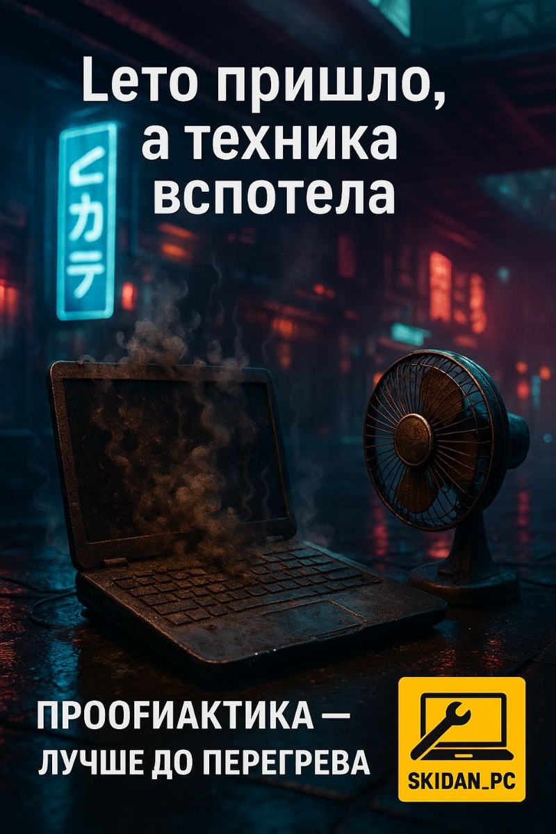 🌞 Лето пришло, а техника вспотела С наступлением жары компьютеры и ноутбуки начинают испытывать настоящий стресс. Пыль, которая копилась всю осень и зиму, уже никуда не улетучится — она мешает охлаждению, заставляет вентиляторы гудеть, а железо — греться. И если зимой это может как-то «прокатить», то летом перегрев — вопрос времени. Начинаются тормоза, внезапные выключения, шум как от самолёта, и даже риск сжечь видеокарту или проц. Особенно у ноутбуков, где всё компактно и тепло некуда деваться. Лето — самое логичное время для профилактики: — снять пыль, — заменить термопасту, — проверить температуру и общее состояние системы. Если умеешь — отлично, это полезная привычка. Но если ни разу не разбирал корпус или не знаешь, где там какие шлейфы — лучше не экспериментировать. Иногда самостоятельная чистка заканчивается не охлаждением, а треснувшим экраном, порванными шлейфами или просто сломанной техникой. Проще (и дешевле) сразу отдать в надёжные руки — тем, кто этим занимается рег