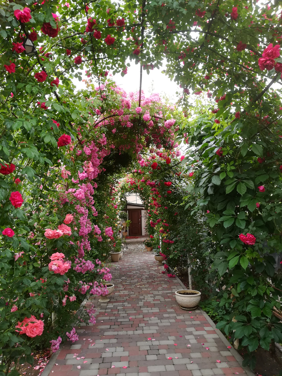 Айда, по саду прогуляемся, ребята. В этом сезоне всё стремительно зацветает и отцветает, хоть и позже начало', чем в прошлом. Парадокс. Идеальное утро нынче, чуть пасмурное, прохладное. Снова дождик обещают, я и рада. Понятно, опять лепестки обобьет и розы склониться заставит, но всё равно, дождь - это жизнь. Сколько ни поливай, с ним не сравнишься. Птицы заливаются, розы благоухают, жимолость с ними соревнуется, у кого аромат сильнее, да притягательней. Покажу, решила, картинки с выставки. Потом уж с толком, чувством, расстановкой расскажу о каждой розе. А сейчас - просто сад-несад, мое маленькое королевство, планета с розами. Время течёт неспешно и неумолимо, облетают лепестки, унося минуты, часы и дни. Каждый уголок по-своему прекрасен для меня. Оставляю день для блаженного ничегониделанья. Сядь, энергичный садовод, в уютное кресло, опусти неизменную книгу на колени, отдайся мыслям ни о чем и обо всем. Выпади из потока быстротекущих дней на миг краткий. Позабудь о делах несдел