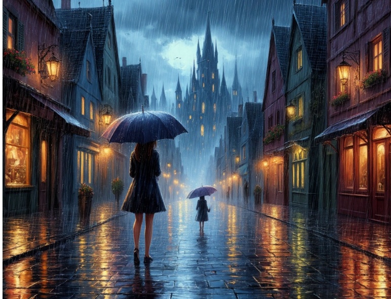 Девочке было одиннадцать. Она всегда любила дождь: в каплях виделась музыка, а в шуме — нечто большее, чем просто вода, падающая на землю. В ту утреннюю минуту что-то внутри неё уже знало: дождь сегодня будет особенным.