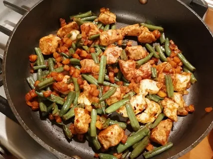 Вкусная, сочная и ароматная курица со стручковой фасолью - отличный вариант быстрого ужина!
