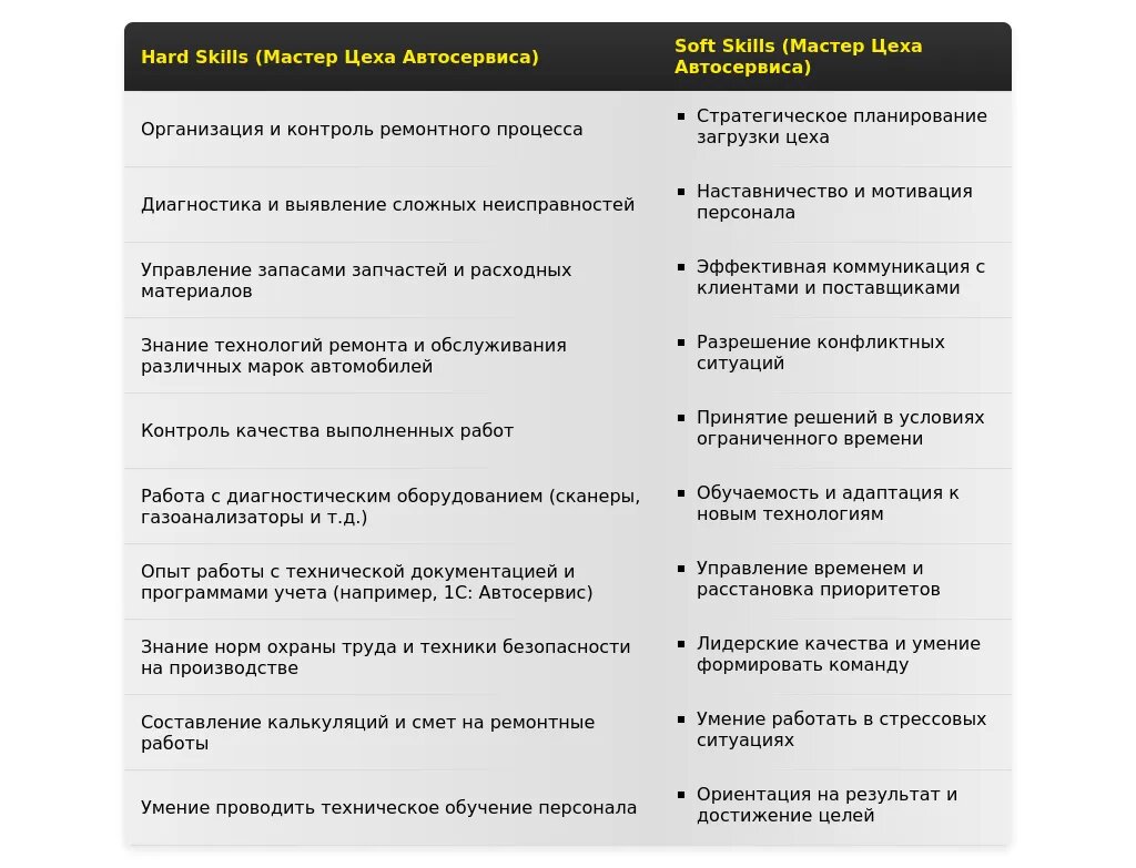 Пример 1: После адаптации (Вакансия: Мастер цеха грузового автосервиса)