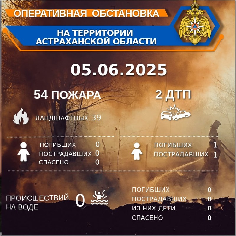 🚨Оперативная обстановка на территории Астраханской области по состоянию на 00:00 04.06.2025
