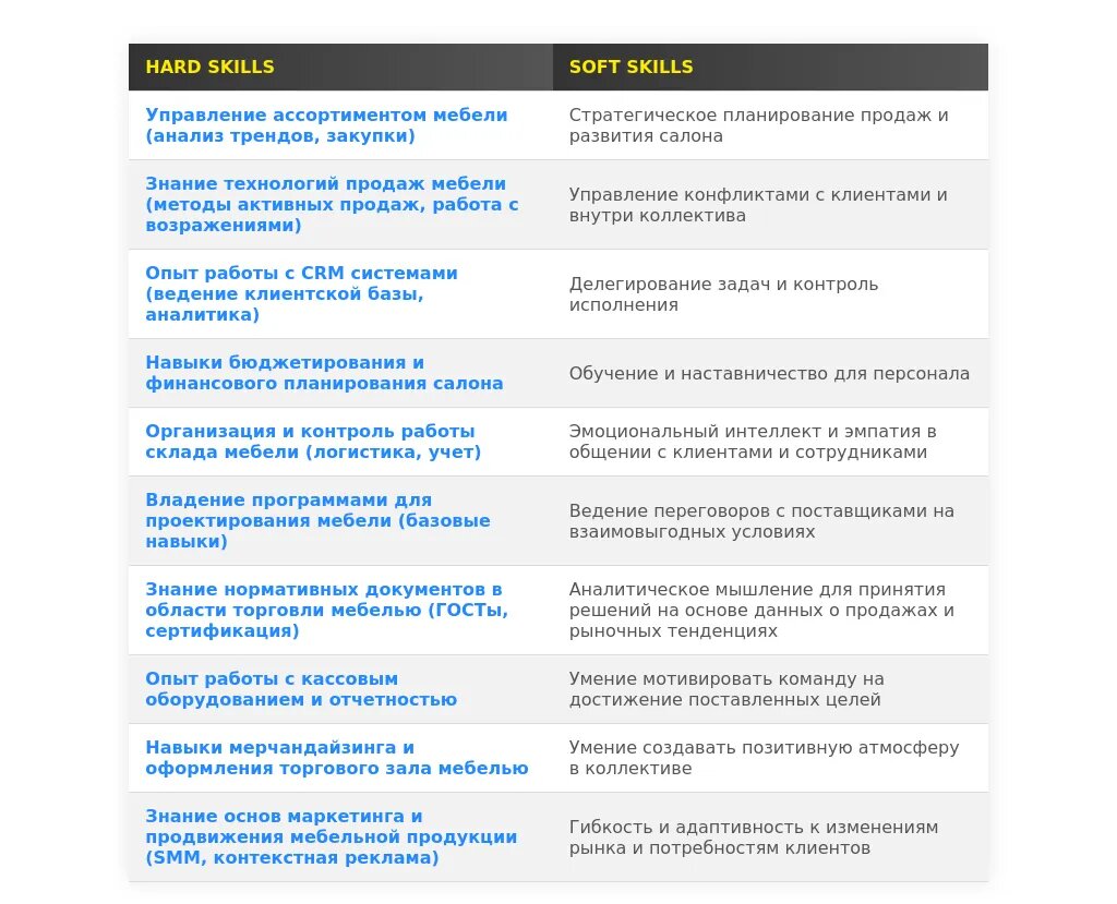 В этом материале вы найдете всё необходимое для создания идеального резюме управляющего салоном мебели, независимо от вашего опыта: