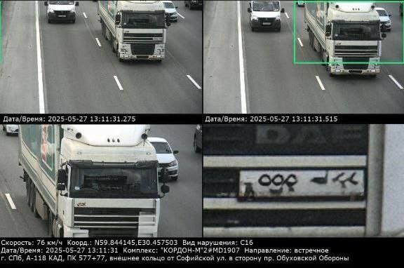 Штраф грузовику за движение далее второй полосы, но тут есть варианта: 🔴либо у сотрудников ГИБДД Петербурга что-то со зрением;) 🔴либо инспекторы стали считать полосы слева, а не справа; 🔴либо камера объединила белый грузовик и белую легковушку, двигающуюся по третьей полосе)))