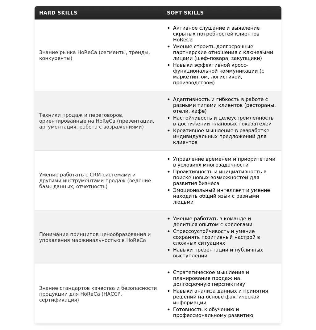 Адаптация раздела "Навыки" для менеджера HoReCa