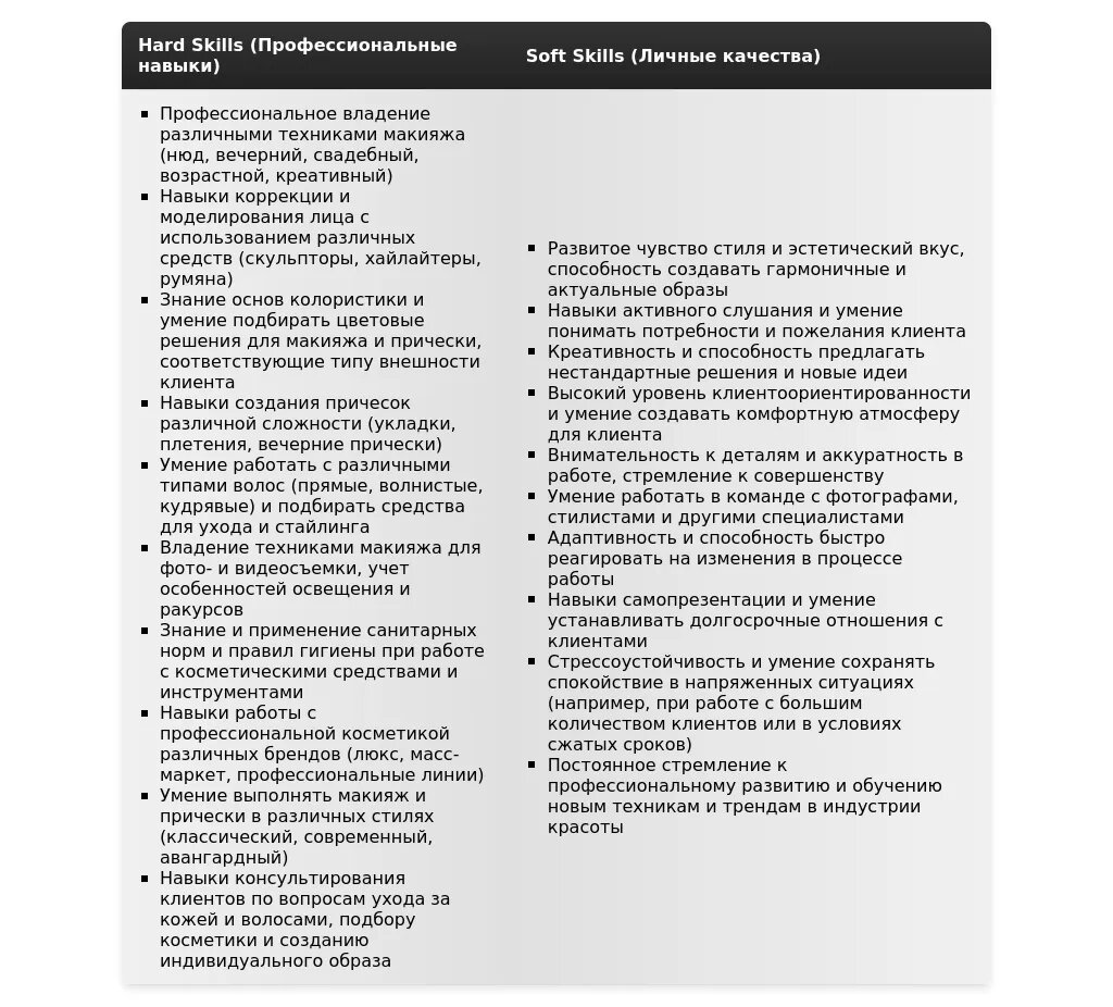 Адаптация раздела "Навыки" в резюме визажиста-стилиста