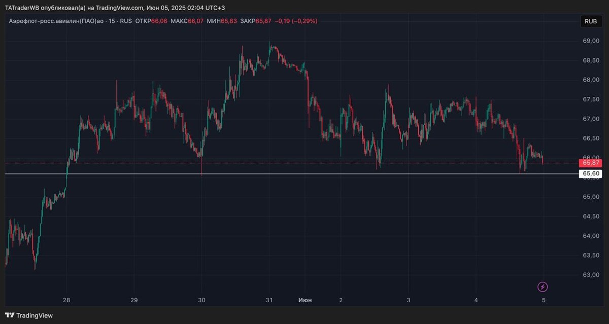 🧠 Вчера индекс закрылся шортово + вечерняя сессия продолжала снижаться, что усилило шортовое закрытие. Поэтому сегодня жду продолжения падения по индексу в сторону 2800. Присматриваю в сторону шорта по аэрофлоту, в пробой уровня поддержки 65,6, по формации чашка с ручкой / голова и плечи. Он имеет достаточно большой потенциал к снижению. Лонговать же сегодня, по крайней мере на открытии точно не стану. Лонги можно будет смотреть на технический отскок от 2800, ближе к факту напишу. План примерно такой. Всем шикарного дня! 🤝