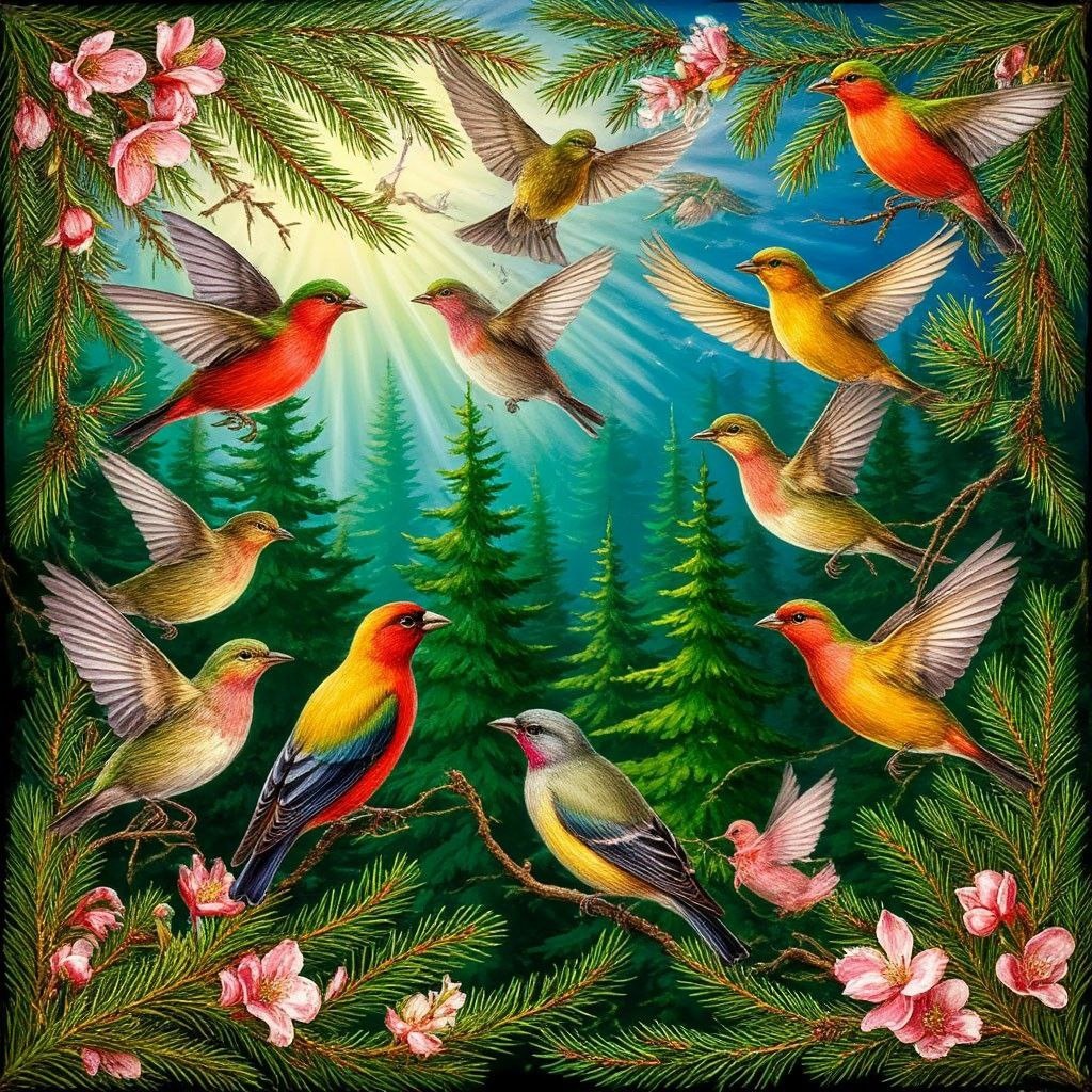 〰️〰️〰️〰️〰️〰️〰️〰️ Что выделывают птицы! Сотни радостных рулад, эхо по лесу катится, ели ухом шевелят… Так и этак, так и этак голос пробует певец: «Цици-вити»,— между веток. «Тьори-фьори»,— под конец. Я и сам в зеленой клетке, не роскошен мой уют, но зато мне сосны ветки словно руки подают. В небе — гром наперекат!.. С небом, видимо, не шутки: реактивные свистят, крыльями кося, как утки. 〰️〰️〰️〰️〰️〰️〰️〰️ Николай Асеев #нейроёжики