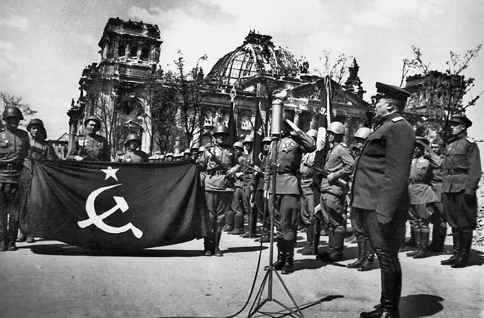 В Берлине подписана Декларация о поражении Германии и о принятии на себя верховной власти в отношении Германии правительствами СССР, США, Великобритании и Временным правительством Франции. Декларация констатировала полное поражение во Второй мировой войне германских вооруженных сил и безоговорочную капитуляцию Германии. Лица, служившие в германских вооруженных силах и организациях, имевших оружие, объявлялись военнопленными. Вооружение и имущество передавалось союзным военным властям. Нацистские лидеры, а также лица, виновные в совершении военных или аналогичных преступлений, подлежали аресту. Управление Германией рассредоточивалось в руках советского, британского, американского и французского главнокомандующих оккупационными войсками. Для согласования их действий в Германии создан Контрольный совет.