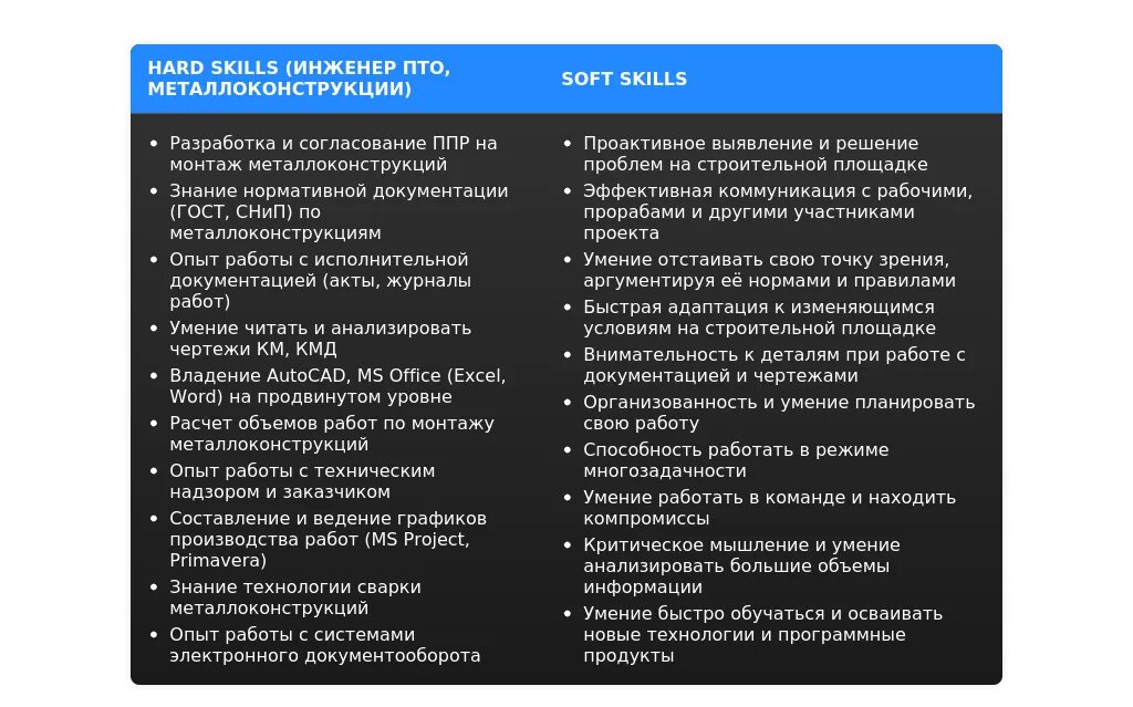 Как правильно написать раздел "О себе" в резюме инженера ПТО (металлоконструкции)