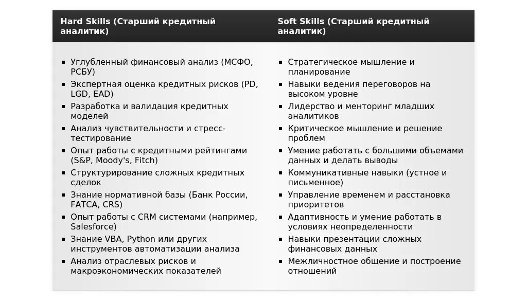 После (для вакансии "Старший кредитный аналитик по корпоративному кредитованию"):