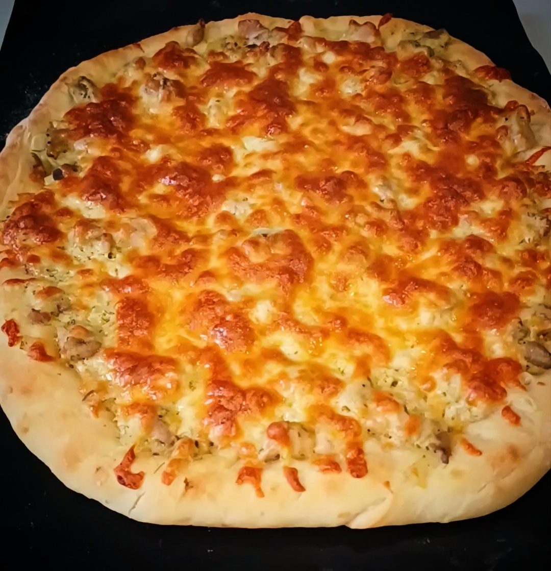 Всем привет, мои дорогие читатели и гости канала! Этот пирог – восхитительная интерпретация классического жюльена, заключённая в нежное, воздушное тесто. Аромат свежеиспеченного теста, смешанный с запахом жареных грибов и нежной курицы, наполнит дом теплом и уютом! Попробуйте приготовить хотя бы раз, и этот пирог станет частым угощением на вашем столе. Все необходимые ингредиенты вы найдёте в конце статьи. И для вашего удобства в конце статьи рецепт есть в формате короткого ролика. В глубокую ёмкость наливаем тёплый кефир, насыпаем сухие дрожжи, сахар. Добавляем соль, оливковое масло. Тщательно перемешиваем. Добавляем заранее просеянную муку. Замешиваем эластичное тесто. Помните, что мука у всех производителей разная. Поэтому количество муки регулируйте по консистенции теста. Тесто получается слегка липкое. Убираем в тёплое место для подъёма. У меня тесто обычно подходит около часа. Берём мякоть куриного бедра и нарезаем небольшими кусочками. Луковицу очищаем и нарезаем кубик