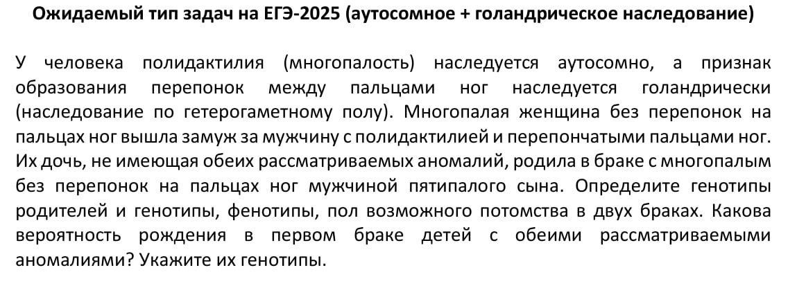 Сбылась линия #28.Приводим пример задачи от Ольги Анваровны Саблиной. Говорят, была арахнодактилия (вместо приведенной на скринах полидактилии) - наследуется тоже аутосомно-доминантно. Голандрический признак - гипертрихоз
