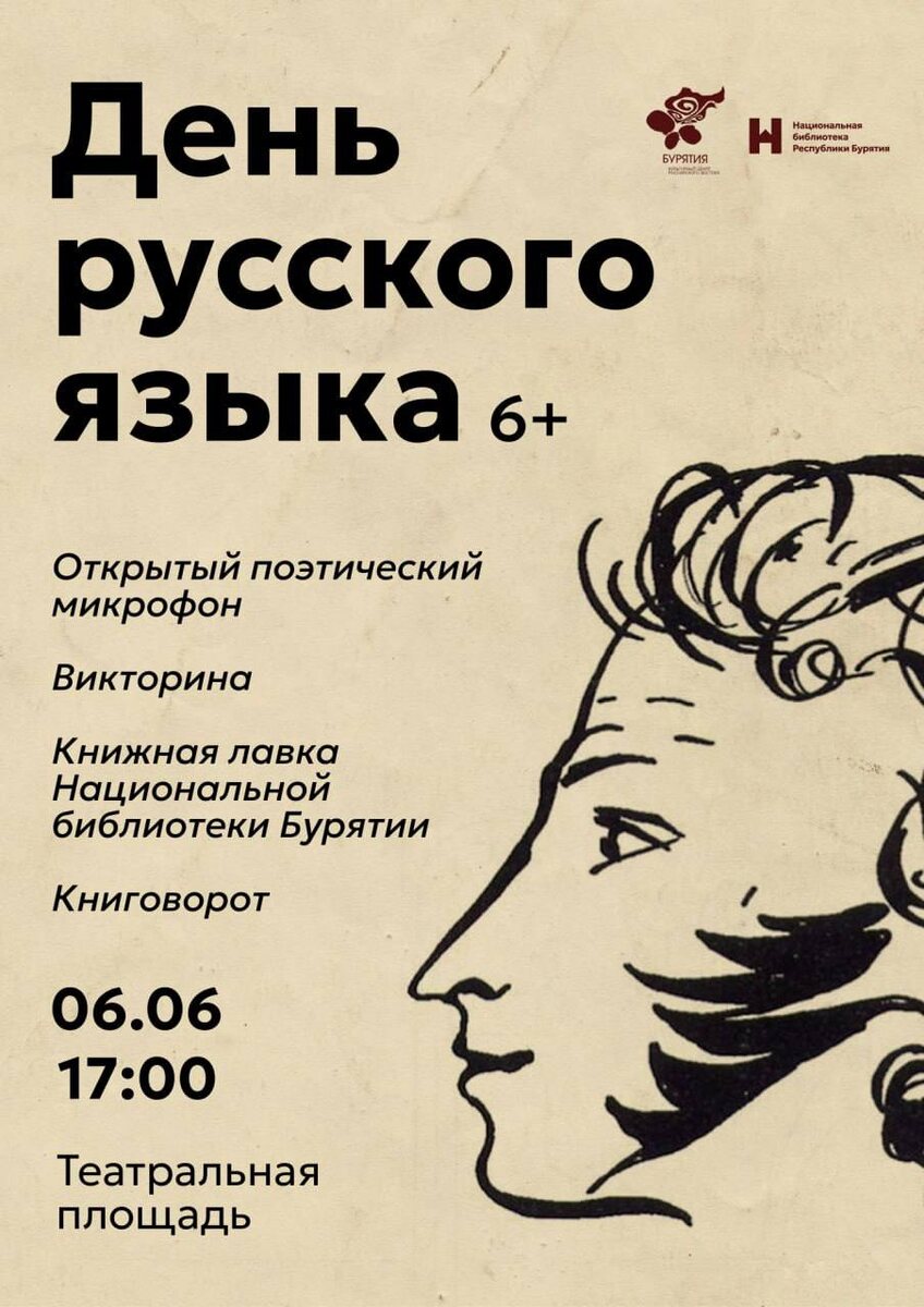 Национальная библиотека приглашает на День русского языка Праздник пройдет на Театральной площади 6 июня (6+) По традиции 6 июня Национальная библиотека Бурятии проведет на Театральной площади День русского языка или Пушкинский день. Праздник посвящен дню рождения великого русского поэта Александра Сергеевича Пушкина и проводится для того, чтобы сохранить богатое культурное наследие, красоту и самобытность русского языка. Праздник начнется с Открытого поэтического микрофона, в рамках которого поэты Улан-Удэ прочтут свои авторские произведения, а также стихотворения Александра Пушкина и других авторов. Кроме того, на территории Театральной площади будет работать Книжная лавка Национальной библиотеки. Вдобавок, гости мероприятия смогут обменяться книгами в рамках традиционной акции «Книговорот», что позволит найти что-то интересное для себя и поддержать культуру чтения в нашем обществе. День русского языка состоится 6 июня с 17:00 до 19:00 на Театральной площади.