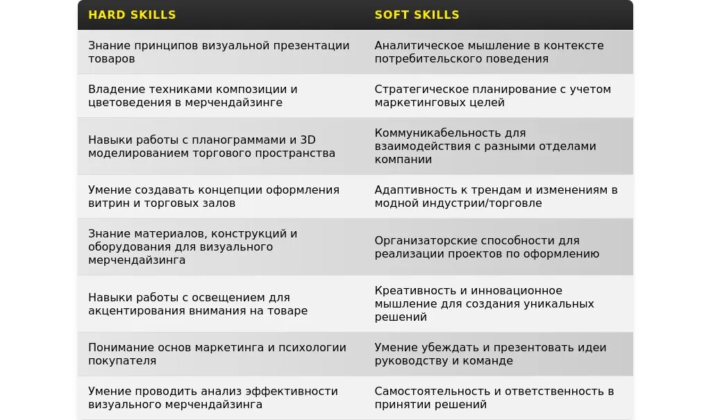 Адаптация раздела "Навыки" для специалиста по визуальному мерчендайзингу