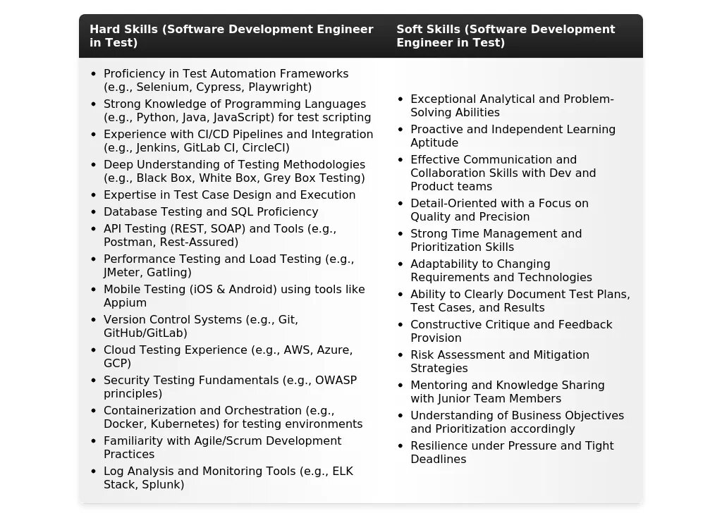 Ключевые навыки и специализации, релевантные позиции SDET.