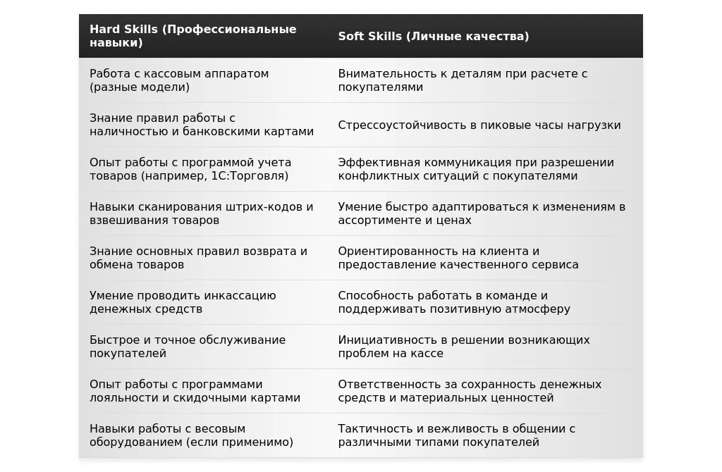- ключевые навыки для кассира;
