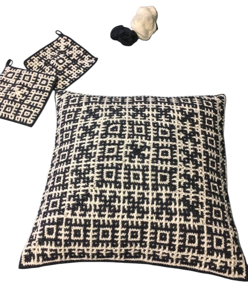 Подушка из нескучных квадратов. Новости наших чатов Работа Оксаны из чата «Нескучные квадраты»🔥 Вязание из центра. Оксана: «Наволочка на подушку (40х40) и две прихватки. Я смогла 💪 и результат мне очень нравится». Нескучные квадраты — чат и схемы: https://t.me/hahakvadrat