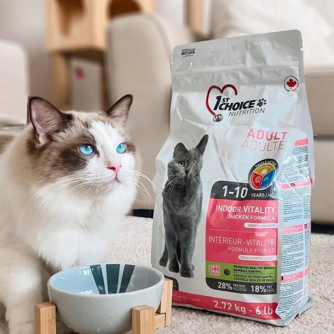 Когда кошка живет в доме, ее жизнь наполнена уютом, мягкими подушками и ласковыми прикосновениями. Но вместе с комфортом приходит и менее активный образ жизни. Именно для таких пушистых домоседов создан 1st CHOICE Indoor Vitality — корм, который заботится о здоровье и энергии питомца каждый день. Состав, которому можно доверять Основой корма является куриное мясо — нежное и легкоусвояемое. В составе также — бурый рис, перловка, овсяные хлопья и льняное семя, богатые природной клетчаткой и источниками энергии. Дополняет формулу лососевый жир, насыщенный омега-3 — для блестящей шерсти и здоровой кожи. Особое внимание уделено пищеварению: в рецептуре — пребиотики (МОС и ФОС), мякоть свеклы и экстракты ананаса и петрушки. Всё это помогает поддерживать нормальную микрофлору кишечника и сводит к минимуму неприятные запахи. Что делает этот корм особенным? Этот корм — идеальный выбор для кошек в возрасте от 1 до 10 лет, которые живут в доме или квартире. Он помогает сохранить здоровье, поддерж