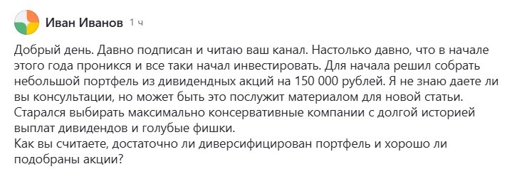 Поступил комментарий от постоянного читателя с просьбой разобрать его портфель: хорошо ли он диверсифицирован, и правильно ли подобраны эмитенты.