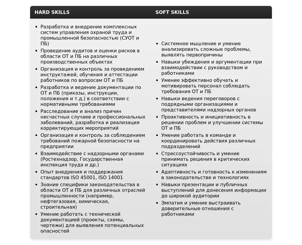 Адаптация раздела "Навыки" для специалиста по ОТ и ПБ