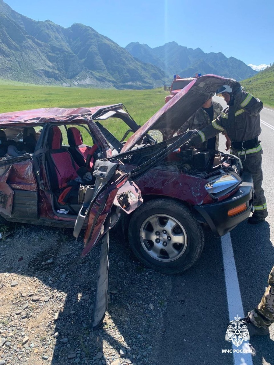 🚒МЧС России ликвидировали последствия ДТП На 699 километре федеральной автодороги Р-256 легковой автомобиль съехал с трассы и опрокинулся. В машине находились четыре человека. К сожалению, один пассажир погиб на месте, еще трое пострадали. При этом водитель оказался заблокирован в кабине, требовалась помощь спасателей. 📍Огнеборцы пожарно-спасательной части №8 МЧС России деблокировали пострадавшего и передали врачам. @04mchs