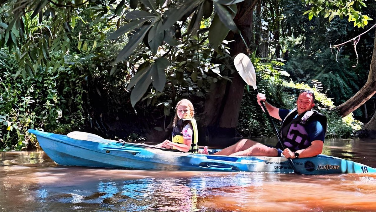 В тайской жаре заходить в ледяную воду — это почти испытание. Но когда ты заходишь в прозрачную реку, где температура, кажется, не превышает +15, весь организм перезагружается. Вода такая чистая, что можно пить. Атмосфера полнейшего спокой