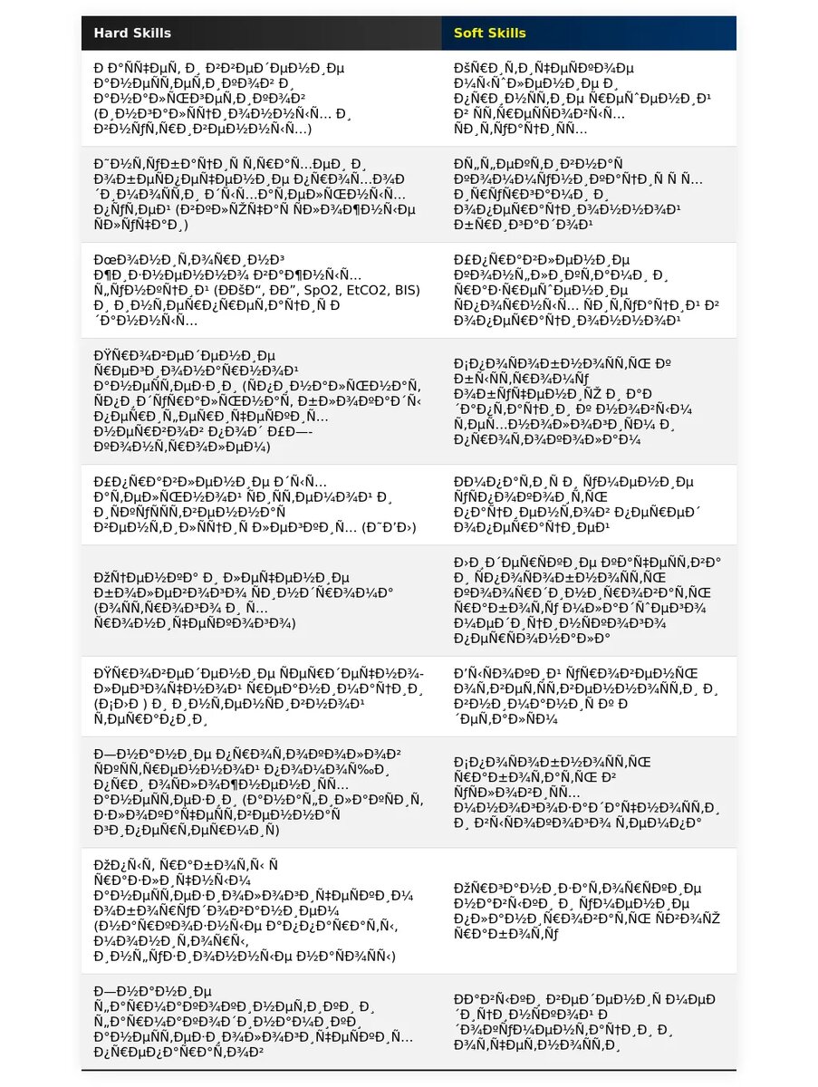 - Разделите навыки на категории: Разделите навыки на категории, такие как "Клинические навыки", "Технические навыки", "Мягкие навыки".