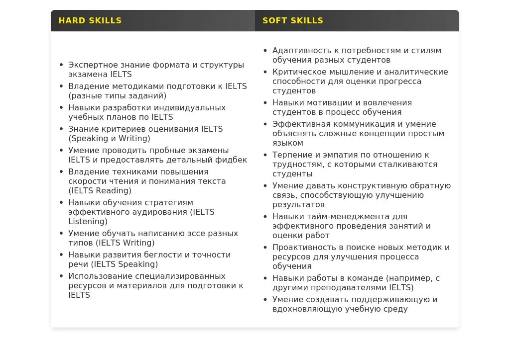 - Ключевые фразы для профессии "преподаватель английского языка (IELTS)":**Преподаватель IELTS**