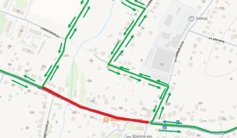 Схема объезда для водителей: ул. Новый путь → ул. Полевая → ул. Прудная