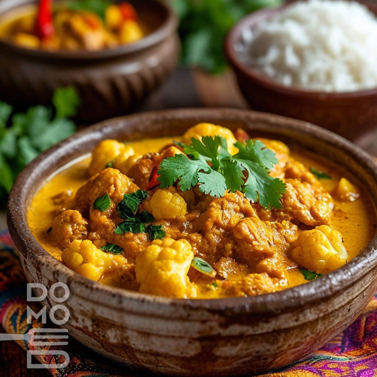 🍛 АРОМАТНОЕ КАРРИ С ИНДЕЙКОЙ И ЦВЕТНОЙ КАПУСТОЙ Нежное мясо в кокосово-пряном соусе с хрустящими соцветиями. ⏳ Время приготовления: 30 минут 🍽 Порций: 4 🔥 Калорийность (порция): ~280 ккал 🛒 ИНГРЕДИЕНТЫ Основные: • Филе индейки — 600 г (полоски) • Цветная капуста — 400 г (соцветия) • Лук репчатый — 1 шт. (мелкий кубик) • Чеснок — 4 зубчика (измельчённый) • Имбирь — 2 ч. л. (тёртый) Для соуса: • Кокосовое молоко (10-12%) — 200 мл • Сок и цедра 1 лайма (или ½ лимона) Специи: • Карри — 1 ст. л. • Куркума — 1 ст. л. • Перец чили — щепотка (по желанию) Дополнительно: • Кинза — 1 пучок (рубленая) • Растительное масло — 2 ст. л. • Соль — по вкусу 👨 ПОШАГОВЫЙ РЕЦЕПТ 1️⃣ Подготовка базы 1. На среднем огне пассеруйте лук в 1 ст. л. масла до прозрачности. 2. Добавьте чеснок, имбирь, карри и куркуму → прогрейте 1-2 минуты. Снимите с огня. 2️⃣ Обжарка индейки 1. На той же сковороде обжарьте полоски индейки в оставшемся масле до лёгкой румяности. 3️⃣ Томление 1. Верните лук со специям