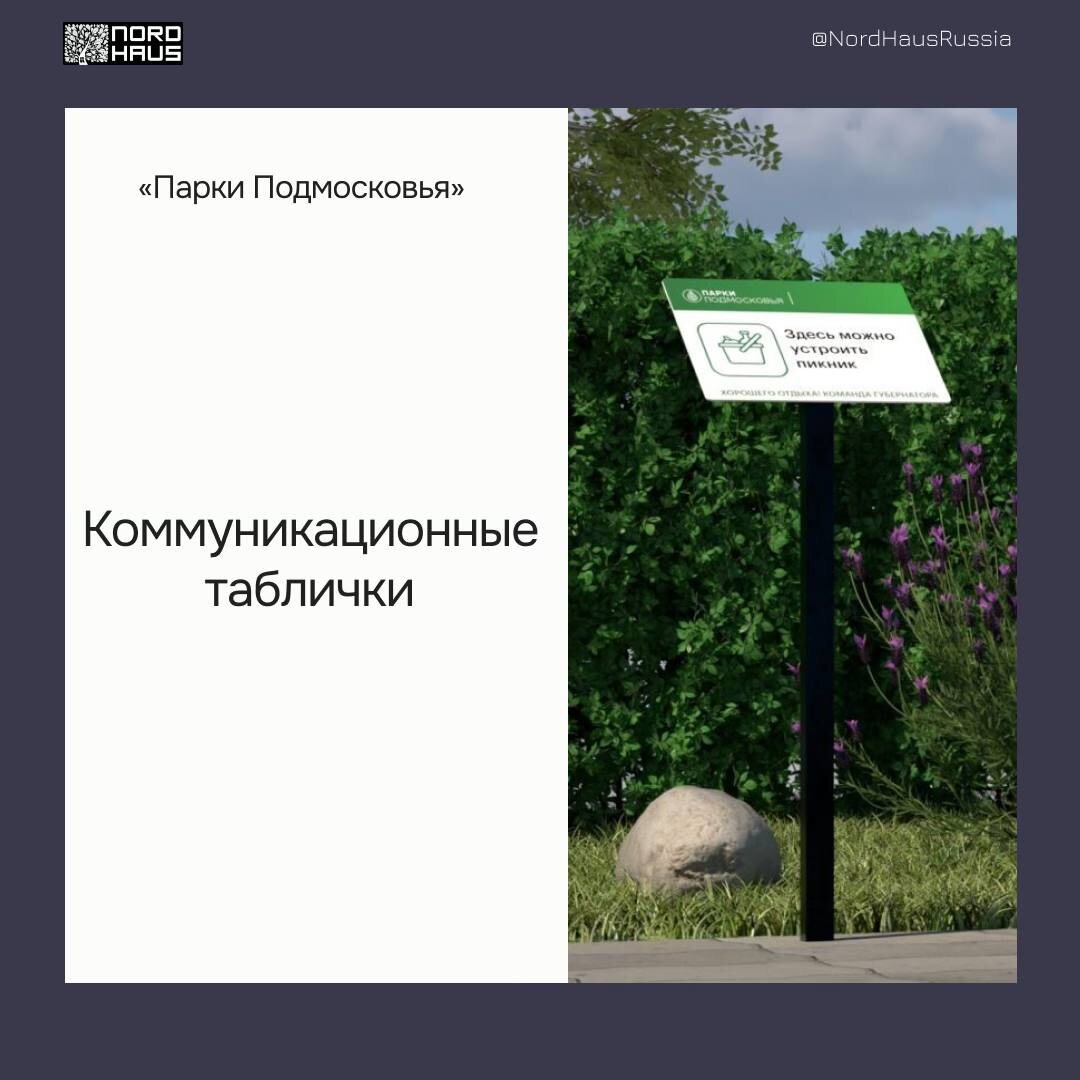 Коммуникационная табличка «Парки Подмосковья» - это небольшой и эффективный элемент оформления общественных пространств, который помогает