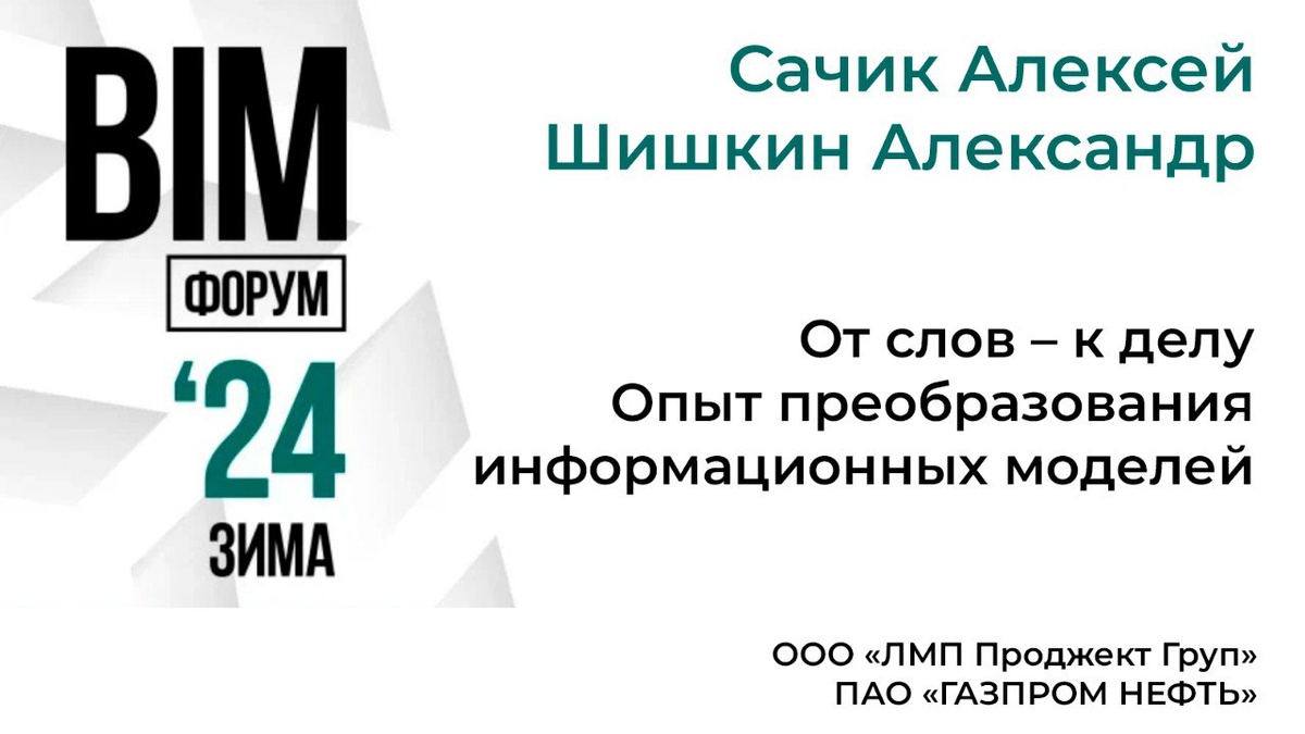 От слов – к делу. Опыт преобразования информационных моделей Сачик Алексей ООО «ЛМП Проджект Груп» Шишкин Александр ПАО «ГАЗПРОМ НЕФТЬ» https://rutube.ru/video/private/5e940e8a726dae909b53d9f6ad8e51b5/?r=wd&p=ktka6ut4up5PZLwRMfrUxA #bimфорум #bimфорум24 #bimфорум24зима