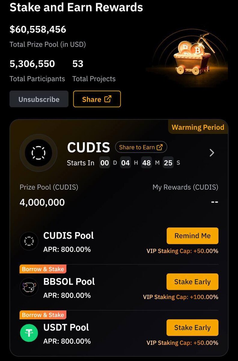 🧘 Вы можете стейкать CUDIS, BBSOL или USDT чтобы получить часть из 4,000,000 CUDIS.