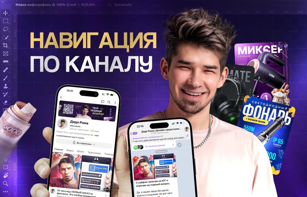 📱Что почитать в канале, Дядя Рома? Собрал всё в одном месте — чтобы ты не терялся и можно было прокачаться и начать зарабатывать на дизайне карточек (навигация по каналу) Собрал для вас жирнейший дайджест — если вы новичок или уже делаете карточки, тут есть все, чтобы прокачать скилл, собрать мощное портфолио и начать зарабатывать стабильно Мои соц.сети и каналы: — Ютуб — Закрытый Телеграм канал — Телеграм канал Листа Ожидания на обучение ( чтобы попасть нужно заполнить форму ) — Мой Бот Обо мне: — Как я переехал в собственную квартиру через 2 года — мой реальный путь на карточках — Несколько интересных фактов обо мне — Про мой переезд в Сочи — Зачем мне гараж на 12 машин — Мои осенние итоги 🔥Новичкам и действующим дизайнером карточек: — Что нужно знать, чтобы стартовать с карточек и не слиться — Как стать дизайнером? Пошаговый план на ближайший год — Где найти клиентов? - пост — Где найти клиентов? - видео — Финальный урок по привлечению клиентов — Где оформлять? Как продвигать