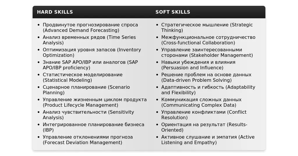 Адаптация раздела "Навыки" для Demand Planning Specialist