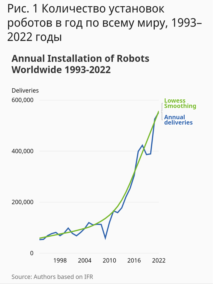 В 2022 году на 48% выросли продажи профессиональных сервисных роботов, составив почти 158 000 единиц, а продажи услуг робототехники увеличились на 50%, составив более 21 000 единиц. Продажи мобильных роботов, особенно в сфере транспорта и логистики, выросли на 44%. Рост продаж роботов для гостиничного бизнеса составил 125%, в то время как продажи медицинских роботов снизились на 4%. Продажи сельскохозяйственной робототехники выросли на 18%, а спрос на роботов-уборщиков и роботов-охранников увеличился на 8% и 18%, соответственно.Государственное статистическое управление Китая 17 марта опубликовало макроотчетность, в которой говорится, что рост промпроизводства в январе-феврале 2025 года составил 5,9% в годовом исчислении. В числе лидеров по развитию традиционно остались такие отрасли, как производство 3D-принтеров (30,2%) и промышленных роботов (27% в количестве 91 088 штук). Выпуск сервисных роботов достиг полутора миллионов единиц, что на 35,7% превышает показатель за аналогичный период прошлого года.Мы наглядно видим в какой стране идет массовая роботизация. Социалистический Китай осуществляет массовую роботизацию, освобождает человека от тяжелых, вредных и просто рутинных работ. В Китае активно развивается так называемая “серебряная экономика”, направленная не только на удовлетворение потребностей пожилых людей, но и стимулирующая их участие в экономике, причем не в качестве какого-нибудь примитивного вахтера на проходной. Китайское правительство стимулирует пожилое население заниматься мелким бизнесом, организуя небольшие магазинчики, химчистки, компании по доставке различной продукции, правительство напрямую внедряет научно-технические инновации, обеспечивает пенсионеров как финансовой поддержкой, так и земельными участками. И дело здесь не в том, что пожилым китайцам не хватает денег. Как говорят сами китайские пенсионеры, раньше у них просто не было времени, ни возможности реализовать все свои планы и мечты. Согласно планам Госкомитета по развитию и реформам КНР в ближайшее десятилетие доля «серебряной экономики» достигнет 10% ВВП. Вы бы хотели такую старость?А что у нас? Вот из последнего: миллиардер и политик Константин Малофеев предложил отменить пенсию в России. Вместо этого, по его мнению, нужно вернуться к практике, применяемой в имперской России, когда пожилых людей обеспечивали их дети. “Почему бы не объявить, что пенсионные взносы в Социальный фонд прекратят собирать через 10 лет, а граждан, например, начиная с 1995 года рождения не ждет государственная пенсия вообще? Уже собранные с их зарплаты пенсионные поборы будут перечислены им назад. Соответственно, пусть сами в свои 30 лет решают, копить им деньги или рожать детей, которые не оставят их в старости”, — высказался Малофеев в своем Telegram-канале.Как говорится, делайте выводы, кого или чего вам стоит бояться, роботов или буржуев.