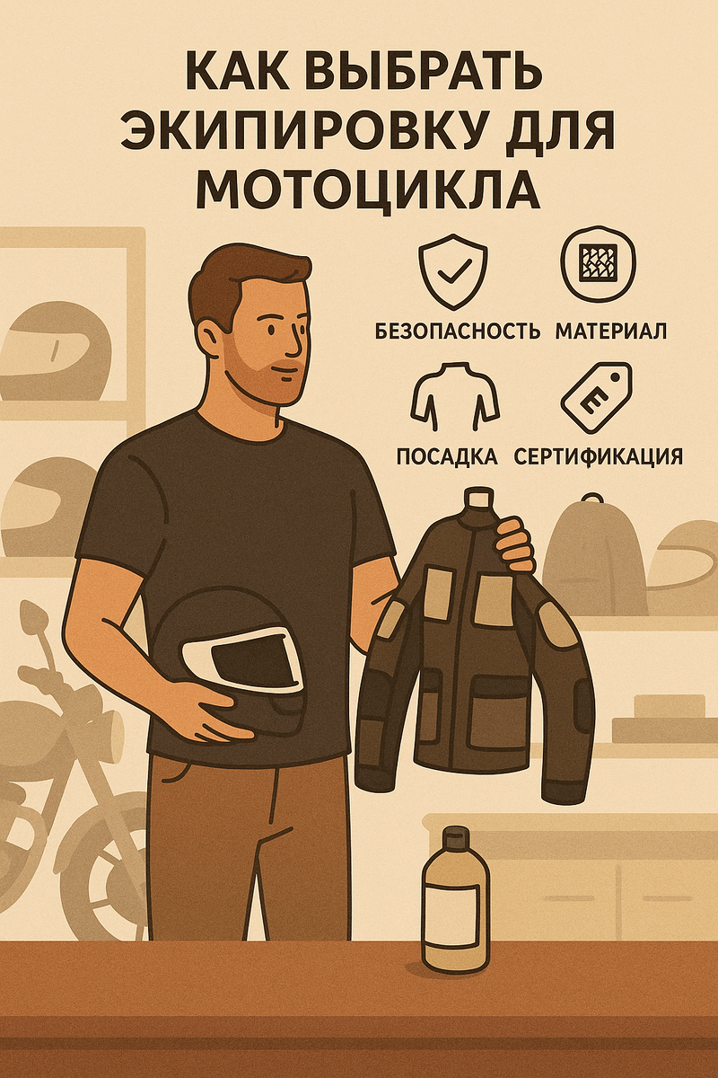 При езде на мотоцикле одежда и аксессуары служат пассивной защитой и обеспечивают комфорт в пути. Выбирая экипировку для мотоцикла, вы выбираете свой уровень безопасности независимо от опыта управления. Подобранный комплект влияет не только на исход возможной аварии, но и на ощущение уверенности в любых погодных условиях.