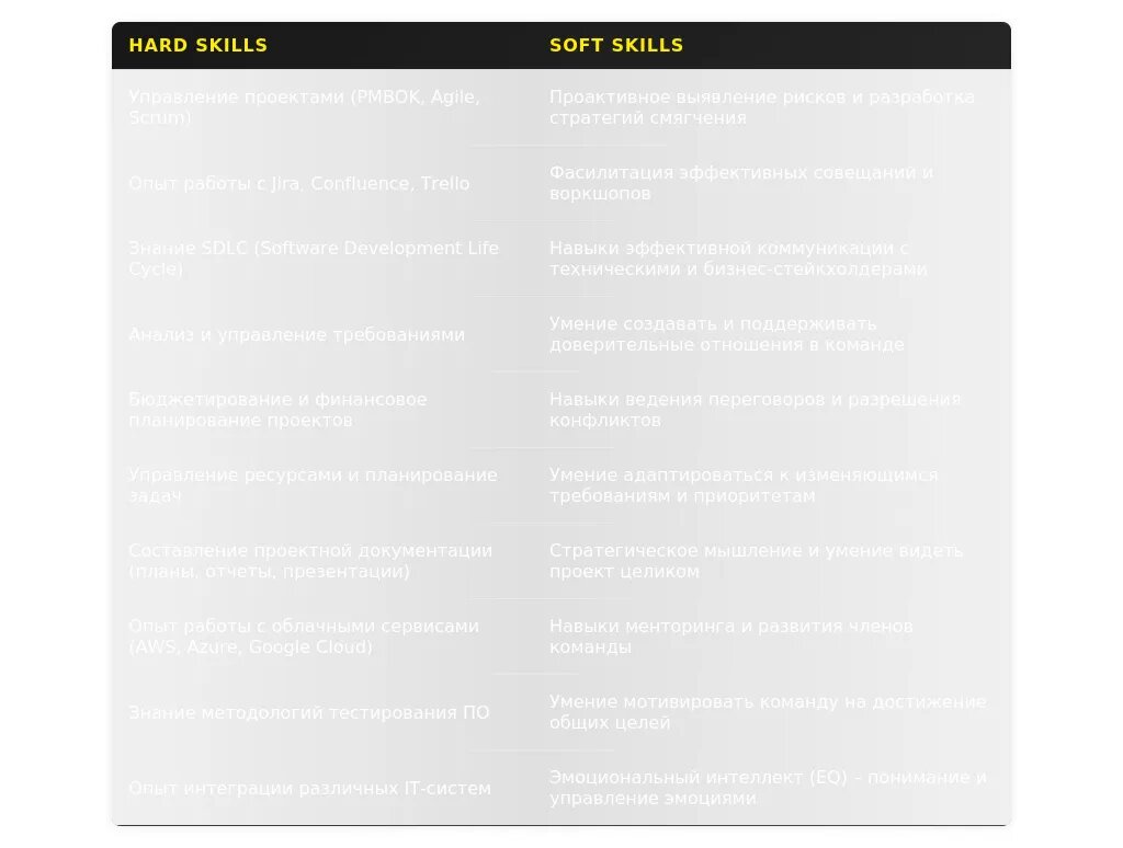 Ключевые навыки и компетенции, релевантные для позиции администратора IT-проектов.