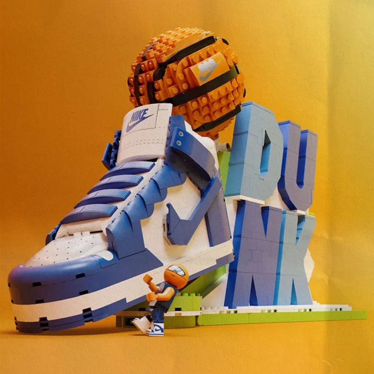 Вчера уже рассказывали о новой паре от брендов, а сегодня показываем конструктор Nike Dunk x LEGO. Конструктор будет состоять из 1180 деталей, из которых можно собрать классические бело-синие «данки», баскетбольный мяч, фигурку и название пары. Кроссовок можно будет использовать как шкатулку: он открывается. Предварительная цена 99,99$, а релиз 1 июля. Больше интересного на нашем сайте POIZON