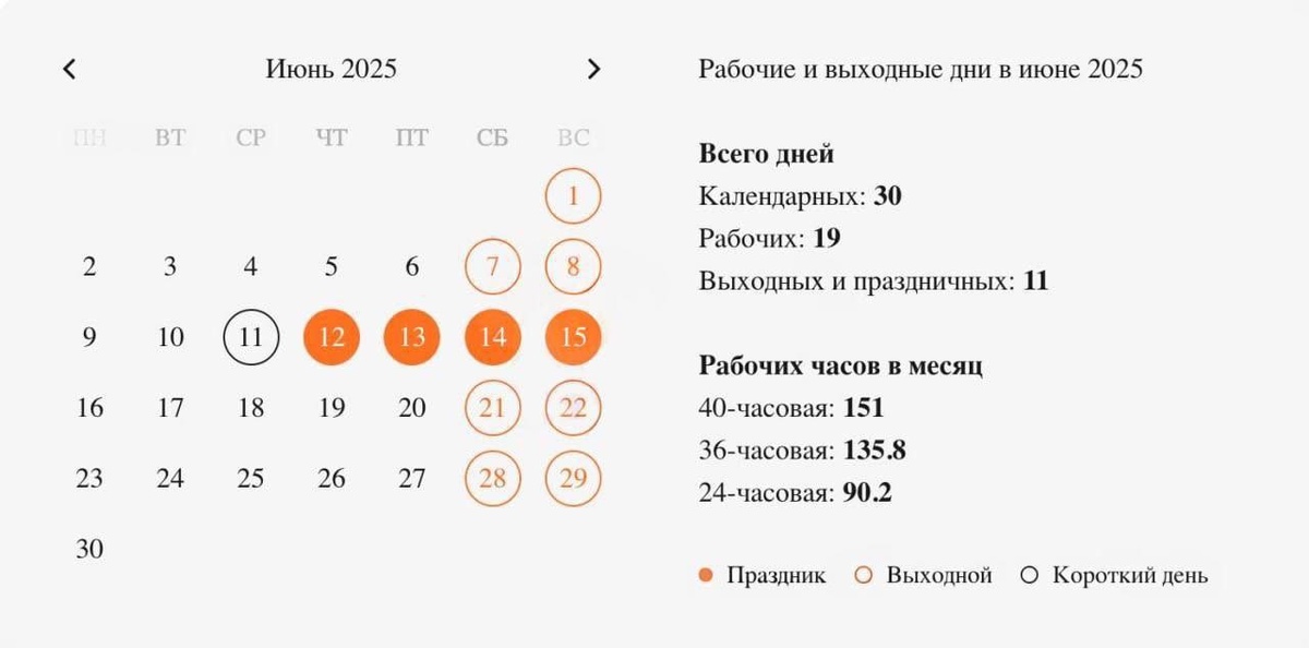 Следующая рабочая неделя для жителей Башкирии также будет сокращенной. Только три рабочих дня ожидаются из-за празднования Дня России. Длинные четырёхдневные выходные продлятся в стране с 12 по 15 июня.