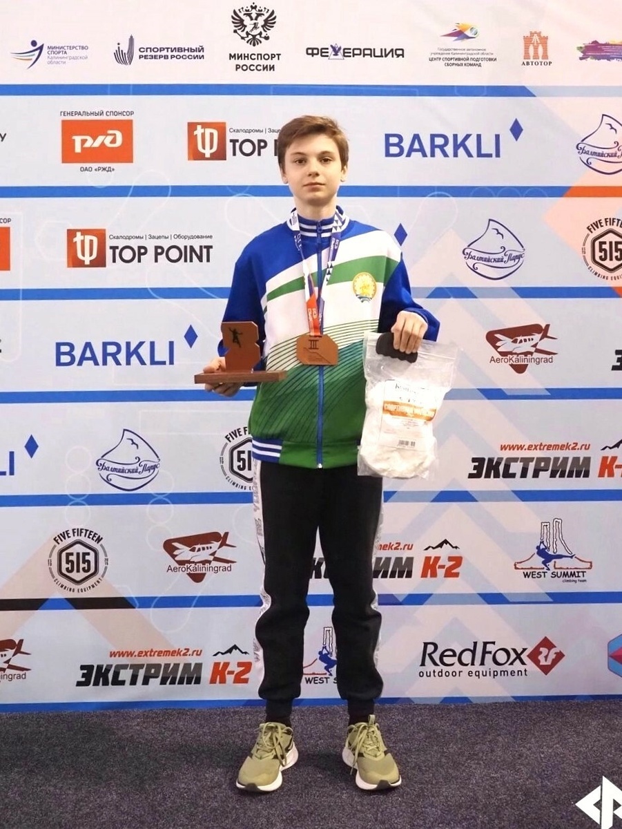 Выступление талантливого спортсмена принесло ему бронзу среди юношей 14 – 15 лет в дисциплине «Лазание на скорость».