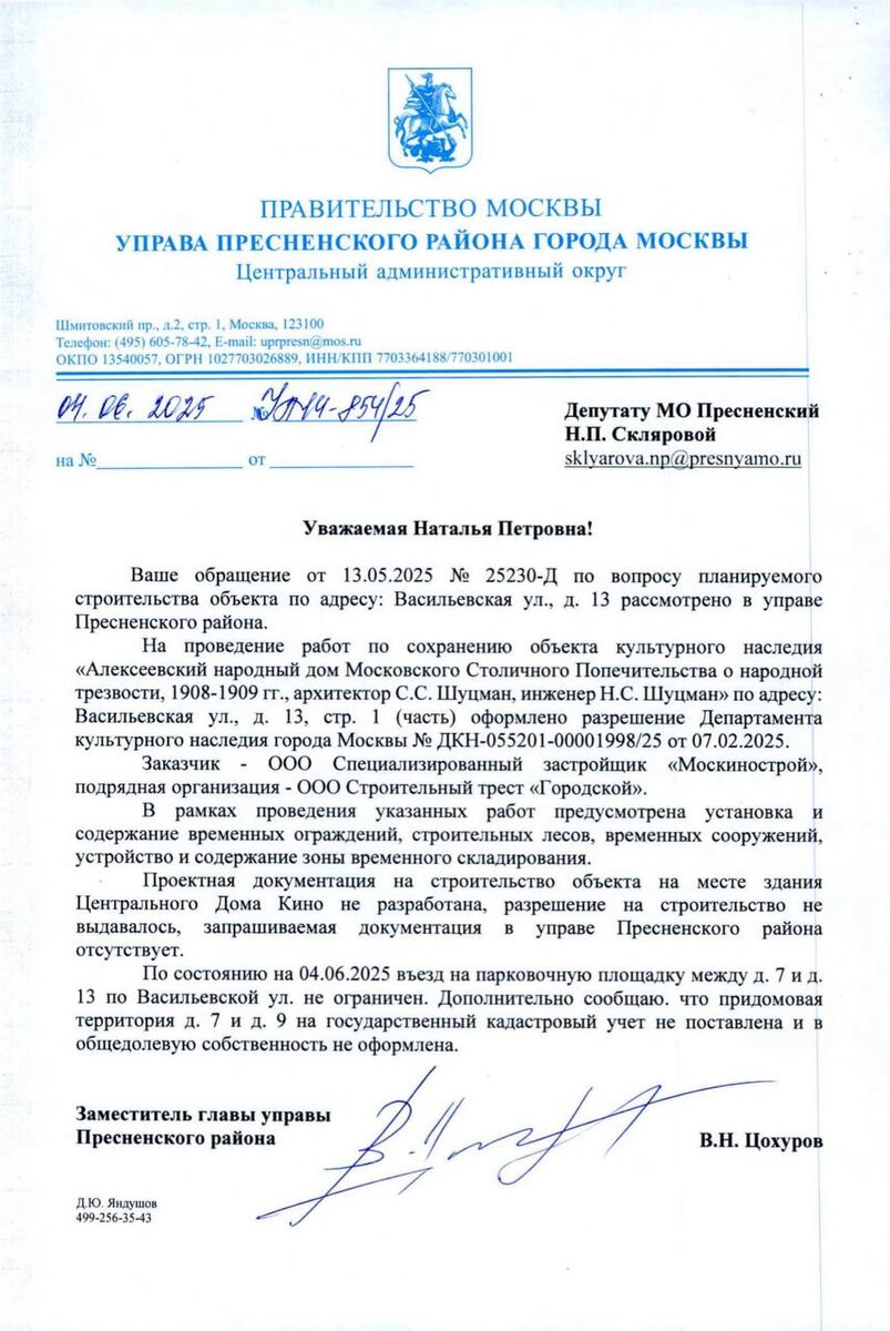 Ответ по адресу Васильевская 7 и 9.