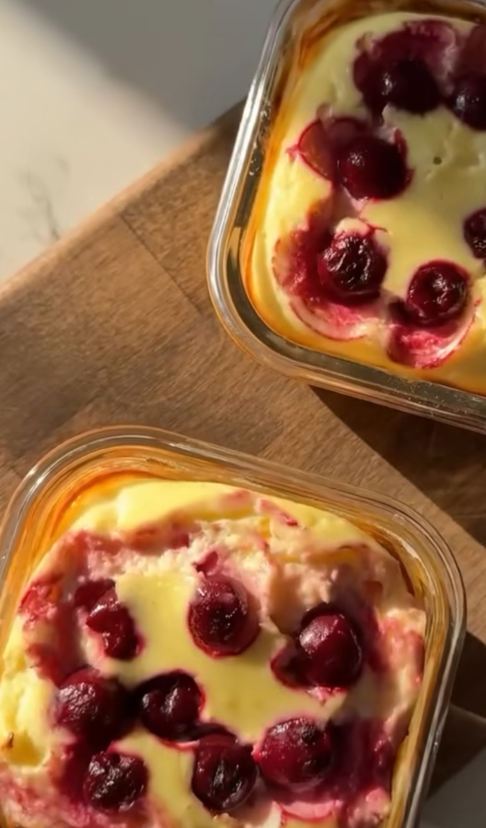 Калорий на порцию : 198, б - 14, ж - 6, у - 20 Ну она очень нежная, обязательно попробуйте🤤 Если хотите вкусняшек и не хочется толстеть🙈 Греческий йогурт - 100гр 1 яйцо Кукурузный крахмал - 15гр (можно заменить на муку) Подсластитель по вкусу Замороженная вишня - 20-30гр, именно ВИШНЯ, она здесь решает😅 5 минут готовим, 20 минут на 180C в духовке ждем, посуду не моем, ее просто нет😆быстро, без заморочек, и очень вкусно🥹