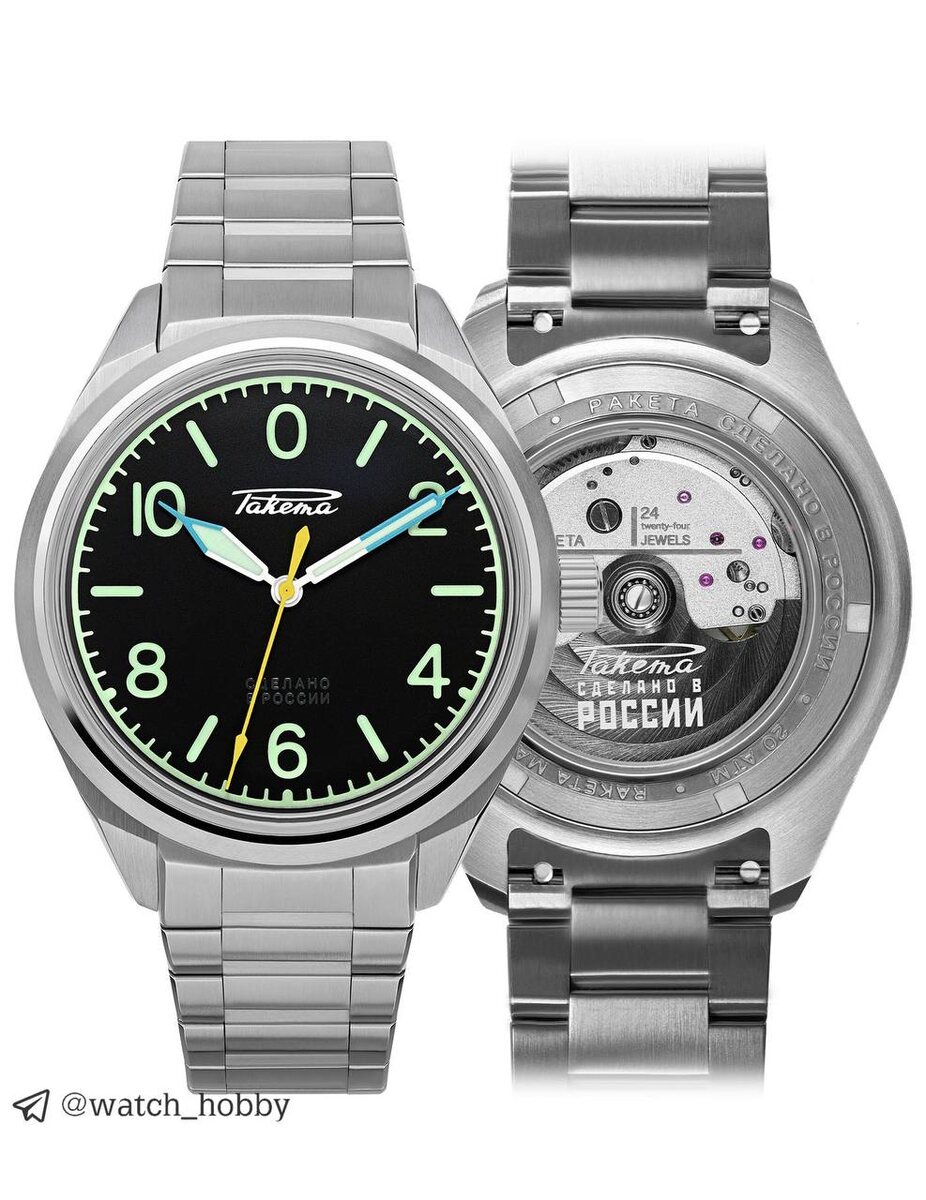 Ракета «Летчик». Новинка! Новый корпус. Он, как и браслет, выполнен из стали. Диаметр - 42мм. Надо мерить, но на первый взгляд выглядит удобным. С двух сторон сапфир, головка завинчивается, водозащита 200 метров. На циферблате часов нет ничего лишнего, абсолютно. Крупная разметка, крупные цифры. Секундная стрелка ярко-желтого цвета, часовая и минутная получили голубые наконечники. Стиль циферблата - авиационный прибор. Сердцем часов является калибр 2615, все тот же. Наш. Стоимость часов составляет 160.000 рублей 💰 и лимита нет. Модель входит в постоянную коллекцию. Очень приятные. Лаконичные. Будем посмотреть. Делись мнением!